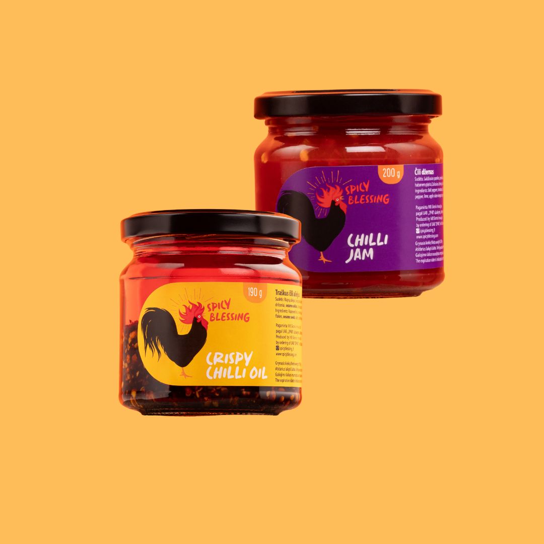 Specialus pasiūlymas - traškus čili aliejus ir čili džemas.